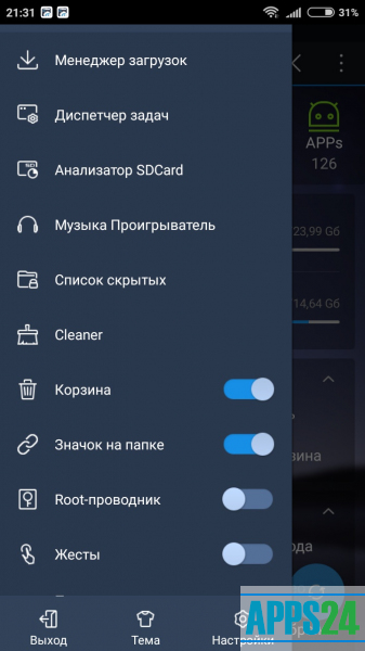 - розширений функціонал для редагування встановлених додатків (видалення, бекап і створення ярликів);